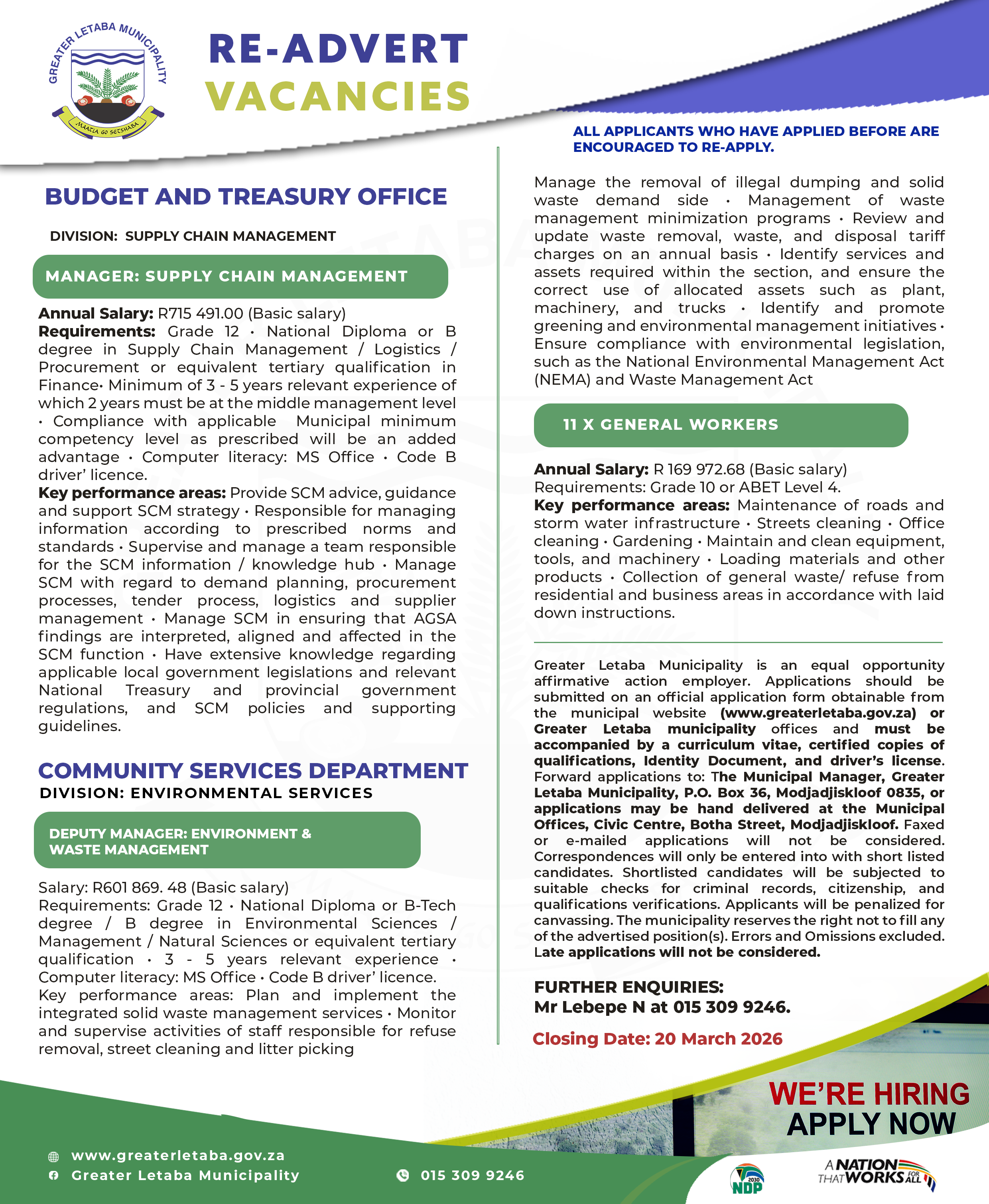 Re-Advert Vacancies Corporate service department